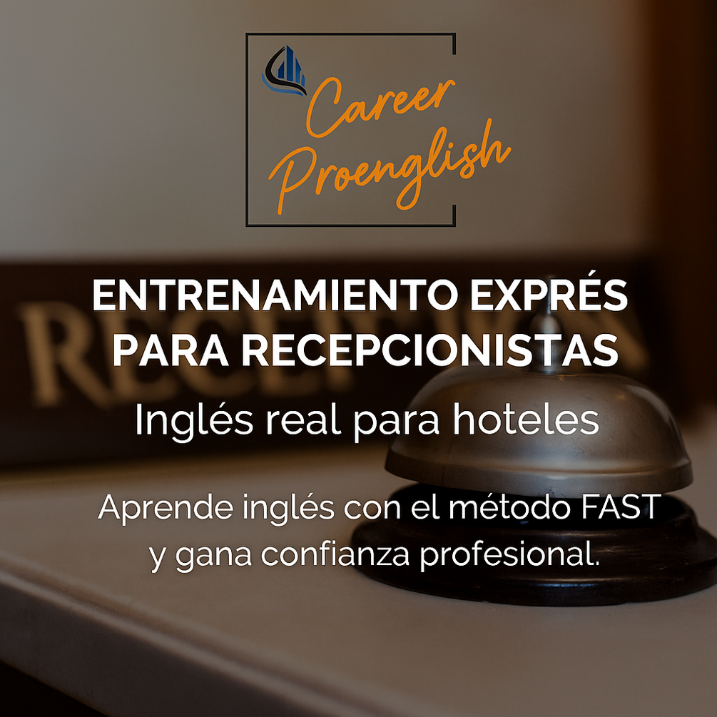 🧡 Recepcionista PRO - 🚀 Entrenamiento exprés de inglés real para recepcionistas de hotel. Domina el idioma con el método FAST (Fluidez, Atención, Seguridad y Técnica) y gana confianza profesional en situaciones de check-in, reservas y atención al cliente internacional. Incluye práctica con avatares, bonus de “Handling Complaints” y sesiones de autocoaching para romper bloqueos comunicativos. 💡 Tu inglés laboral, preparado para brillar.